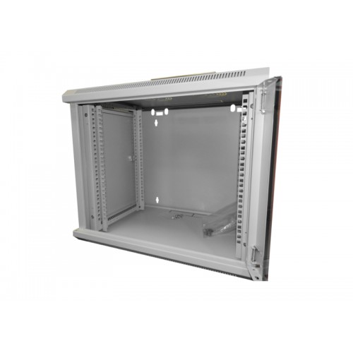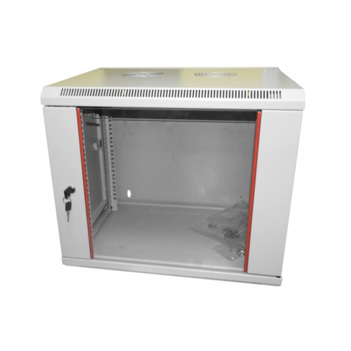 53792 Шкаф настенный 6U серия WM (570х600х370), передняя дверь стекло, разборный, серый Netko