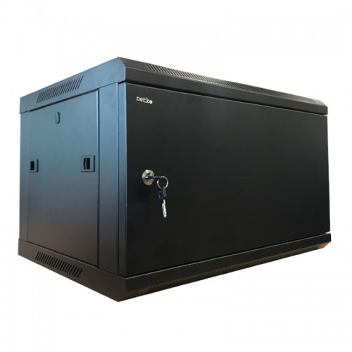 56882 Шкаф настенный 6U серия WM (600х450х370), разборный, передняя металлическая дверь, черный Netko А