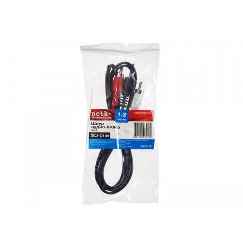 51327 Шнур аудио-видео: 2RCA-3,5 мм стерео ( длина 1.2 м, литой), Netko