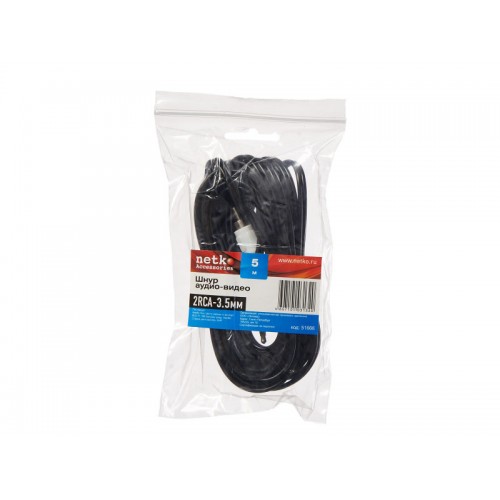 51666 Шнур аудио-видео: 2RCA-3,5 мм стерео ( длина 5 м, литой), Netko