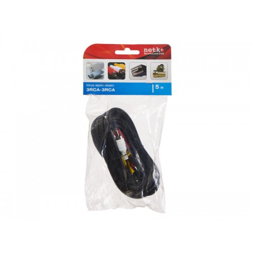 52190 Шнур аудио-видео: 3RCA-3RCA ( длина 5 м, литой) блистер, Netko РАСПРОДАЖА