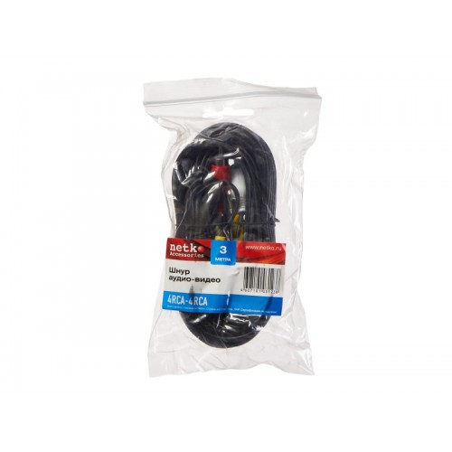 51657 Шнур аудио-видео: 4RCA-4RCA ( длина 3 м, литой), Netko