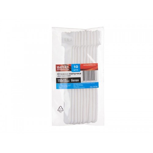 54750 Стяжка-липучка многоразовая 150*12 /10 шт (белая), Netko