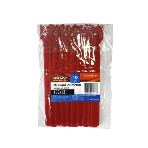 60109 Стяжка-липучка многоразовая 150*12 /10 шт (красная), Netko