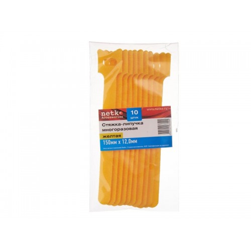 54538 Стяжка-липучка многоразовая 150*12 /10 шт (желтая), Netko
