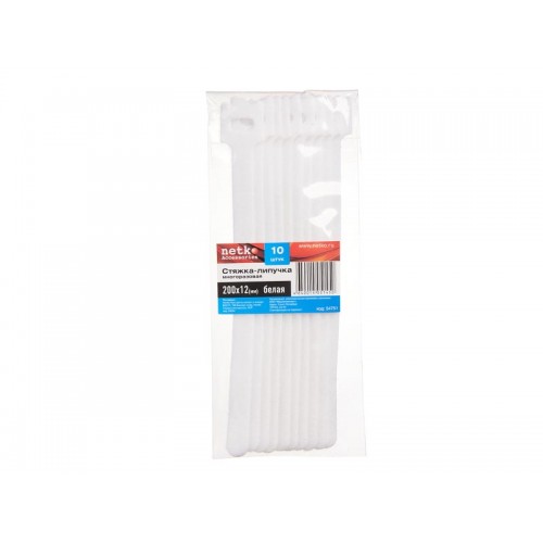 54751 Стяжка-липучка многоразовая 200*12 /10 шт (белая), Netko