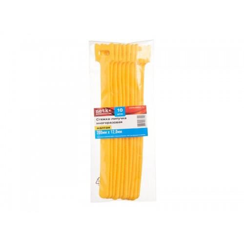 54537 Стяжка-липучка многоразовая 200*12 /10 шт (желтая), Netko