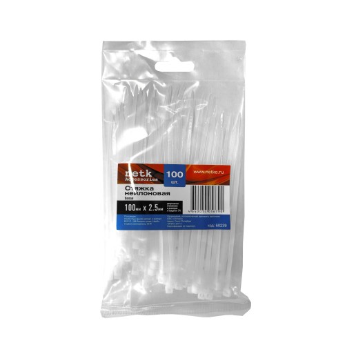 60239 Стяжка нейлоновая 100*2,5 / 100 шт (белая), Netko SZ