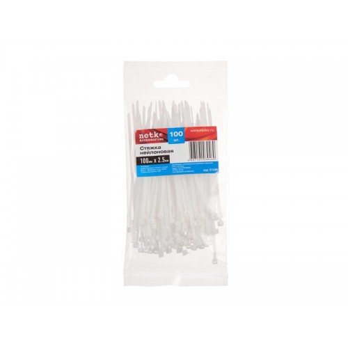 51248 Стяжка нейлоновая 100*2,5 /100 шт (белая), Netko