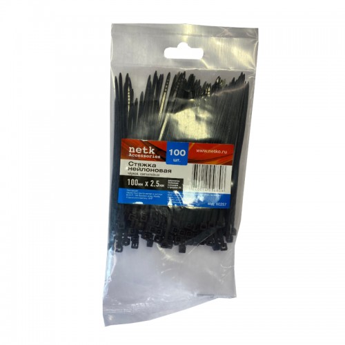 60257 Стяжка нейлоновая 100*2,5 / 100 шт / светостойкая (черная), Netko SZ