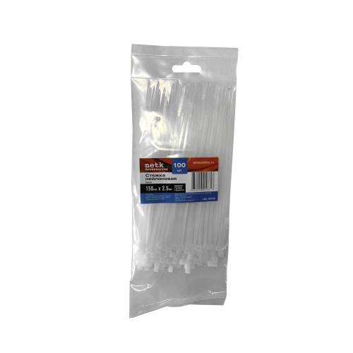 60240 Стяжка нейлоновая 150*2,5 / 100 шт (белая), Netko SZ