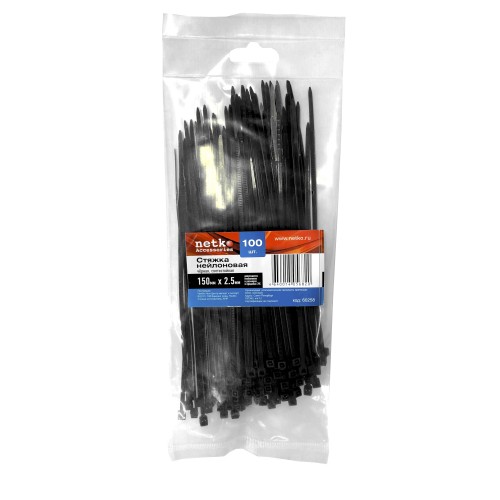 60258 Стяжка нейлоновая 150*2,5 / 100 шт / светостойкая (черная), Netko SZ