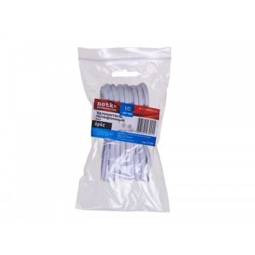 51184 Удлинитель телефонный (6р4с) 10 метров / белый, Netko