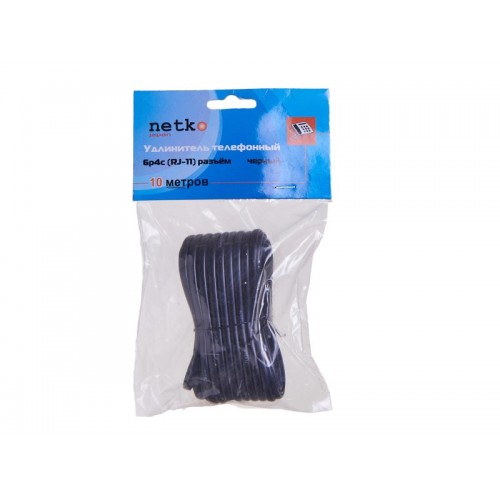 52215 Удлинитель телефонный (6р4с) 10 метров / черный, блистер, Netko РАСПРОДАЖА