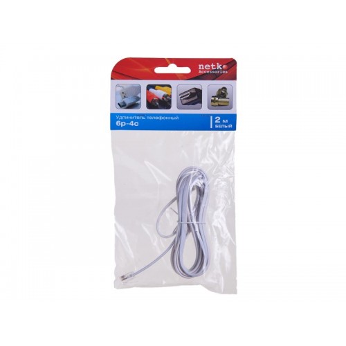 52206 Удлинитель телефонный (6р4с) 2 метра / белый блистер, Netko РАСПРОДАЖА