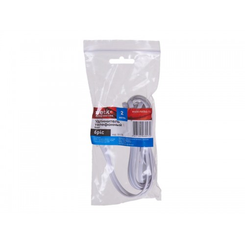 51175 Удлинитель телефонный (6р4с) 2 метра / белый, Netko