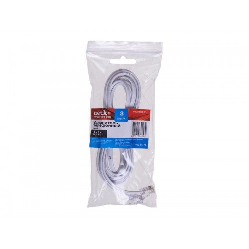 51178 Удлинитель телефонный (6р4с) 3 метра / белый, Netko