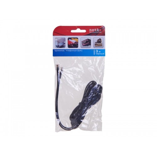 52208 Удлинитель телефонный (6р4с) 3 метра / черный, блистер, Netko РАСПРОДАЖА