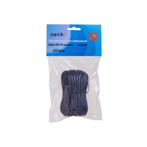 52213 Удлинитель телефонный (6р4с) 7 метров / черный, блистер, Netko РАСПРОДАЖА