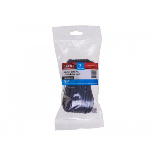 51247 Удлинитель телефонный (6р4с) 7 метров / черный, Netko