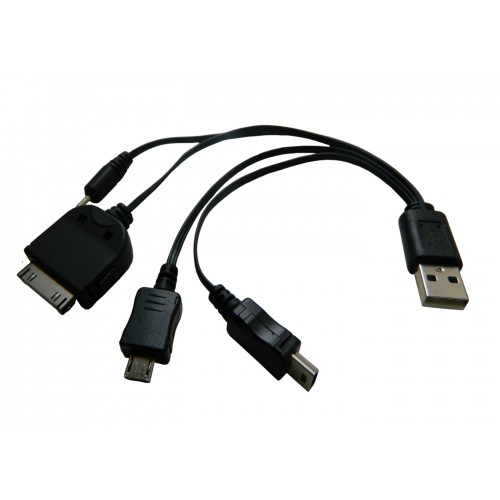 53616 Универсальный USB мульти-шнур для зарядки телефонов и устройств 4 штекера: Nokia 2.0, Mini USB, Micro-USB, iPod 30pin (iPhone)