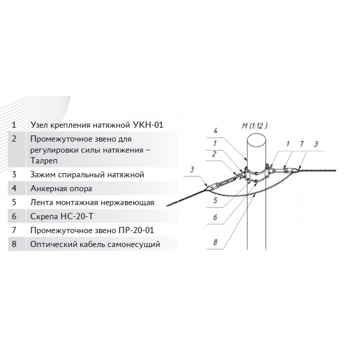 Зажим спиральный натяжной предназначен для крепления оптического самонесущего кабеля к анкерным опорам. Зажим обеспечивает надежную фиксацию кабеля, не искажая оптические характеристики.