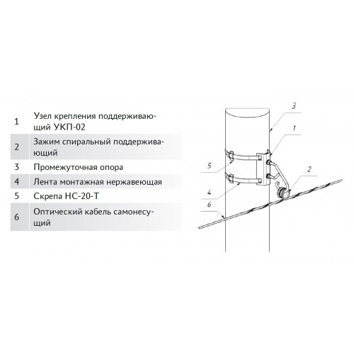 Зажим спиральный поддерживающий предназначен для крепления оптического самонесущего кабеля к промежуточным опорам. Зажим обеспечивает надежную фиксацию кабеля, не искажая оптические характеристики.