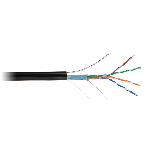 EC-UF004-5E-PE-SW-BK Кабель F/UTP 4 пары, Кат.5е, медный, внешний, PE -40, с тросом, черный, 305м