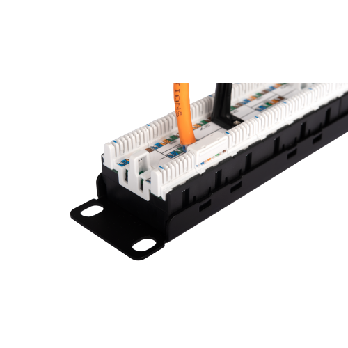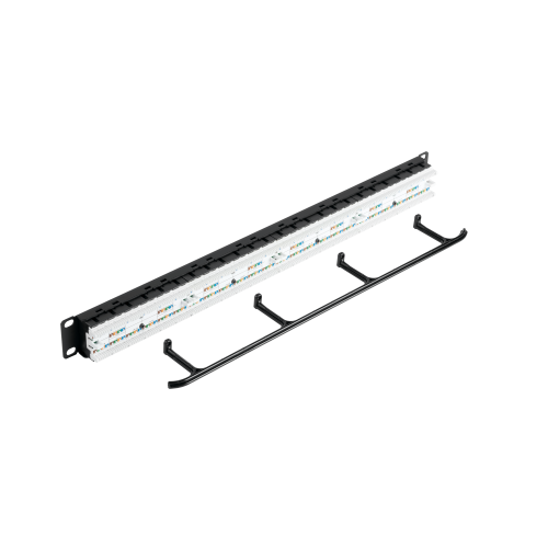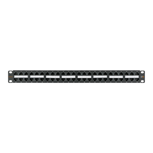 NMC-RP48UE2-1U-BK выполнена в неэкранированном корпусе и предназначена для монтажа в 19' шкафы или стойки. Данная панель вмещает 48 портов RJ45/8P8C при высоте в 1U. Такое решение идеально, когда необходимо обеспечить высокую плотность портов (например, в дата-центрах) или для расширения сети в ограниченном пространстве шкафа. С тыльной стороны патч-панелей размещены контакты 110 типа с цветной маркировкой по двум стандартам: T568А и T568B. Особый дизайн контактов также позволяет использовать для заделки кабелей ножи типа KRONE. Для удобства администрирования все порты пронумерованы, а также имеются дополнительные площадки для маркировки. Для защиты кабельных соединений и IDC контактов в комплект входят защитные крышки. Предусмотрен съемный органайзер для надежного закрепления кабелей.