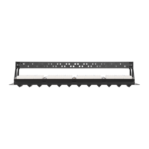Коммутационные панели (патч-панели) предназначены для разделки в них кабелей различных подсистем СКС и подключения отдельных составляющих сети друг к другу коммутационными шнурами. Особенностью панелей серии «AN» являются угловые порты, которые позволяют удобно разносить коммутационные шнуры в стороны, и закреплять их на вертикальных кабельных органайзерах. Такое решение позволяет обходиться без стандартных кабельных органайзеров и экономить ценное место в шкафу. Патч-панели NMC-RP24UD2-AN-1U-BK (Кат.5е) вмещают по 24 порта RJ45/8P8C при высоте 1U. Панели выполнены в черном цвете и предназначены для монтажа в 19 шкаф или стойку. С тыльной стороны панелей размещены контакты 110 типа с цветовой маркировкой по стандарту Т568А/В. Для удобства администрирования все порты пронумерованы, имеются дополнительные маркировочные площадки. В комплекты патч-панелей входят удобные съемные органайзеры для разводки входящих кабелей.