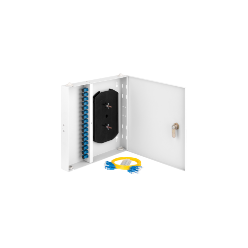 NMF-WP16SCUS2-IP-ES-GY предназначен для монтажа на стену. Корпус кросса выполнен из стали и надежно защищает волокна от внешних механических воздействий и попадания внутрь посторонних предметов. Для защиты кросса дверца оснащена замком, запираемым на ключ. В каждом кроссе предусмотрены посадочные шпильки для размещения на них сплайс-кассеты, а также 4 кабельных ввода, для которых в базовой комплектации предусмотрены специальные заглушки. Простая конструкция позволяет осуществлять удобный и быстрый монтаж оптических сетей.
