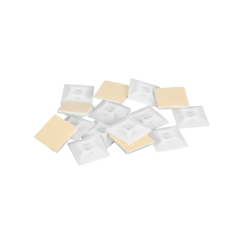В местах, где необходимо прикрепить одиночный кабель или небольшой кабельный пучок к какой-либо поверхности, самым простым и удобным решением является использование стяжек и самоклеющихся площадок. Площадки NIKOMAX имеют липкий слой с высоким уровнем адгезии и два отверстия под винты для дополнительного закрепления при необходимости. Основания поставляются двух размеров: 20х20 мм, с проушинами под стяжки шириной до 4,5 мм и 28х28 мм с проушинами 5 мм.