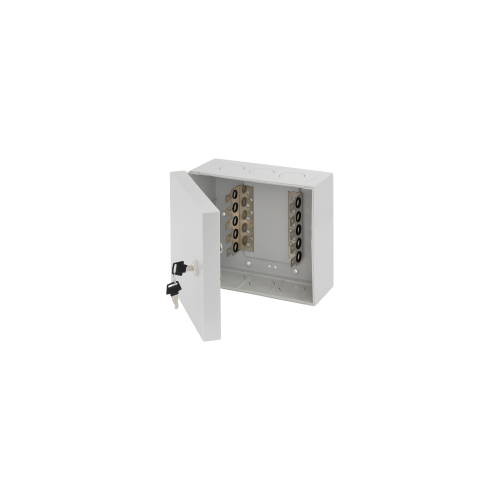 Основное назначение всех распределительных боксов – защита узла коммутации от внешних воздействий и несанкционированного доступа. Кронштейны в боксах предназначены для установки 10-парных плинтов типа KRONE. Боксы NIKOMAX для 3-х, 5-ти и 10-ти плинтов выполнены из качественного пластика и снабжены кронштейнами для установки плинтов.