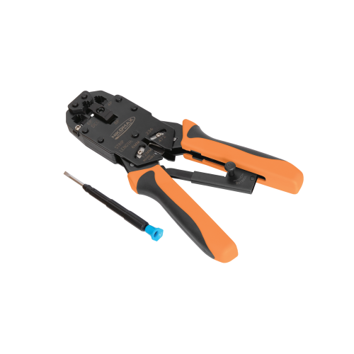 Обжимные инструменты (кримперы) предназначены для обжима коннекторов типа Registered Jack (RJ) на телефонных кабелях и кабелях передачи данных. Кримпер NMC-2008AR предназначен для обжима разъемов типа RJ45/8P8C, RJ12/6P6C, RJ11/6P4C, 4P4C и 4P2C. Инструмент оборудован устройством для зачистки и обрезки кабеля. Данный инструмент является профессиональным, благодаря “торцевому” обжиму и многофункциональности.